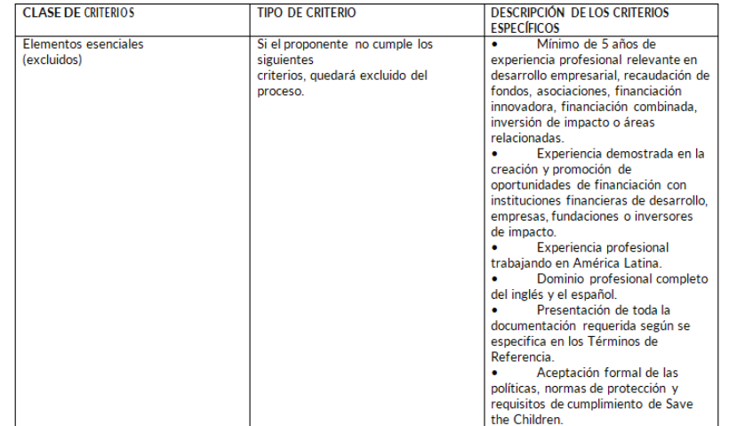- Estar cubierto por un seguro contra accidentes y/o enfermedades que puedan ocurrir durante la ejecución de esta consultoría.